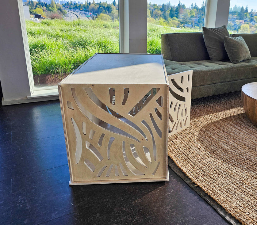 A modern, intentional feeding setup — glass or wooden containers that match your home’s tone